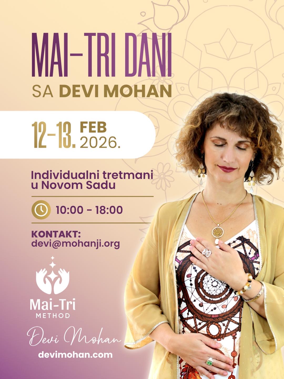 A deeply attuned energy healer, Devi Mohan is a leading practitioner of the Mai-Tri Method, a profound process that cleanses, harmonizes, and revitalizes the energy field. Her healing sessions have brought relief and transformation to countless individuals, elevating their consciousness and accelerating their spiritual evolution.