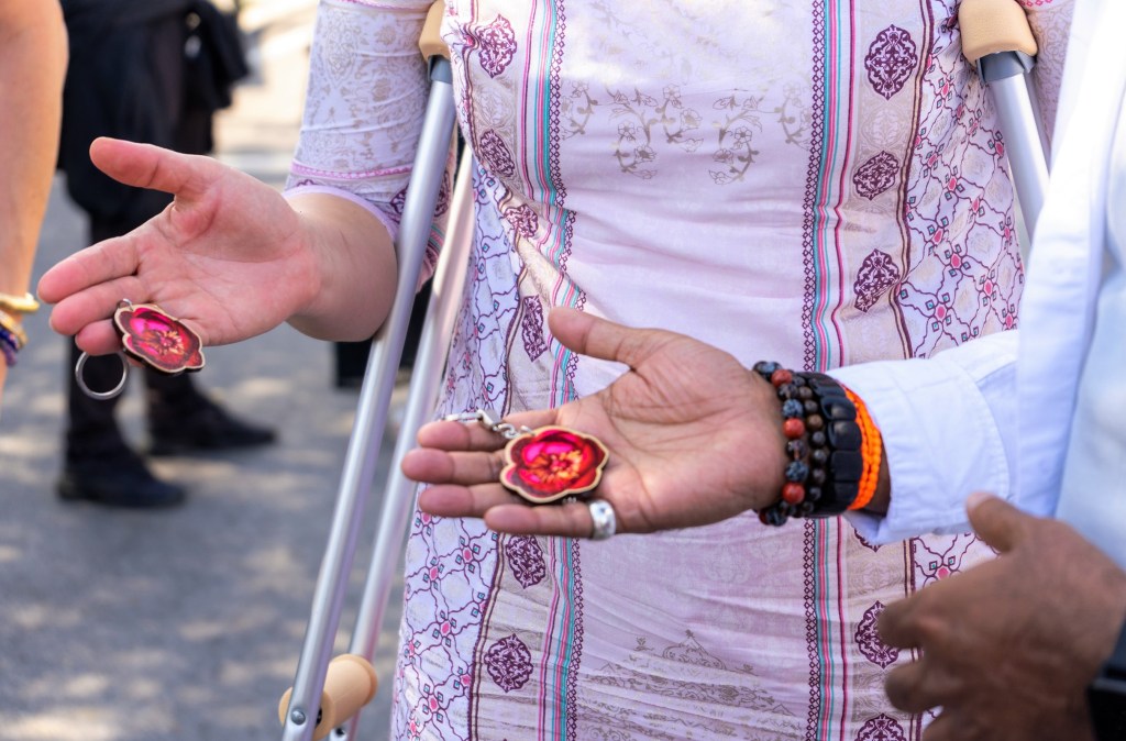 Jedna divna žena nam je poklonila priveske za Kosovskim božurima, retkim cvetom za koji se veruje da je izrastao iz zemlje poškropljene krvlju poginulih junaka..