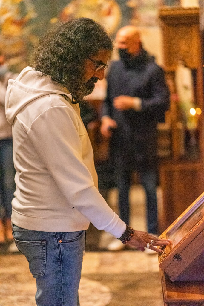 Tokom poklona svetim moštima, u meni se odjednom pokrenula poplava suza koju nisam mogla kontrolisati – osećaj velikog ganuća, svete povezanosti sa precima, sa njihovom hrabrošću i požrtvovanošću… Što je zanimljivo, suze su preplavile i Mohanđijevog ličnog asistenta Kristofera koji nema veze sa pravoslavljem. Svi smo bili ganuti i očarani energijom Visokih Dečana.