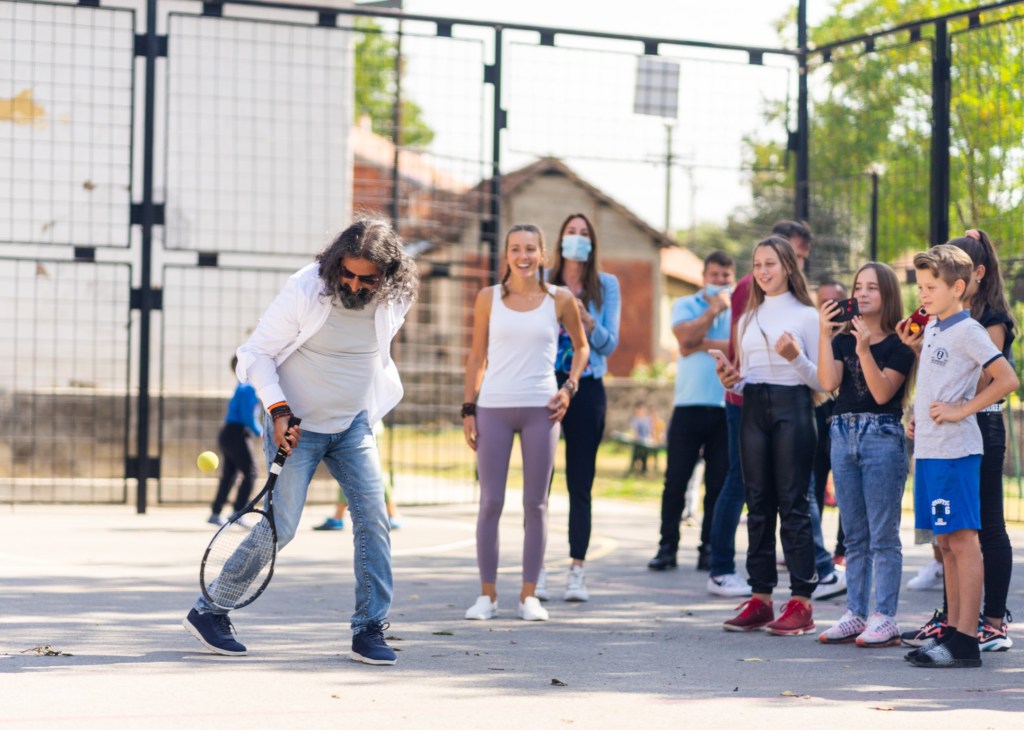 Dečica su nas radosno dočekala sa reketima, košarkaškim loptama i velikim uzbuđenjem, spremni da dožive nezaboravne momente sa našim velikanima sporta i humanosti. Neki od njih su sa stidnim osmehom gledali u Mohanđija, rekavši da se po prvi put susreću sa Indijcem. Jelena i Mohanđi su spontano uzeli rekete i igrali tenis sa decom.