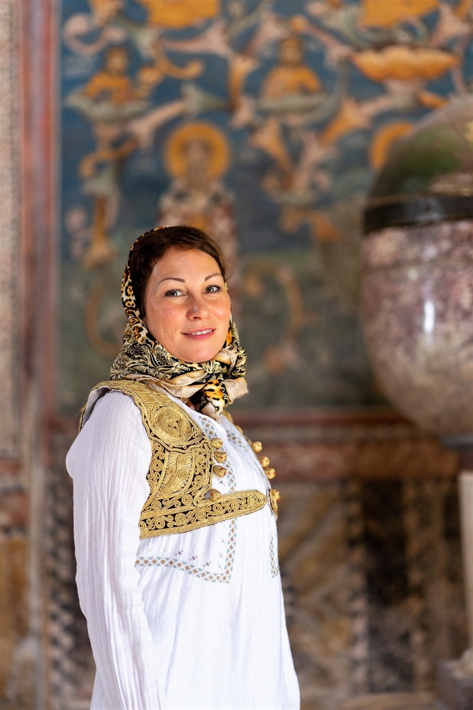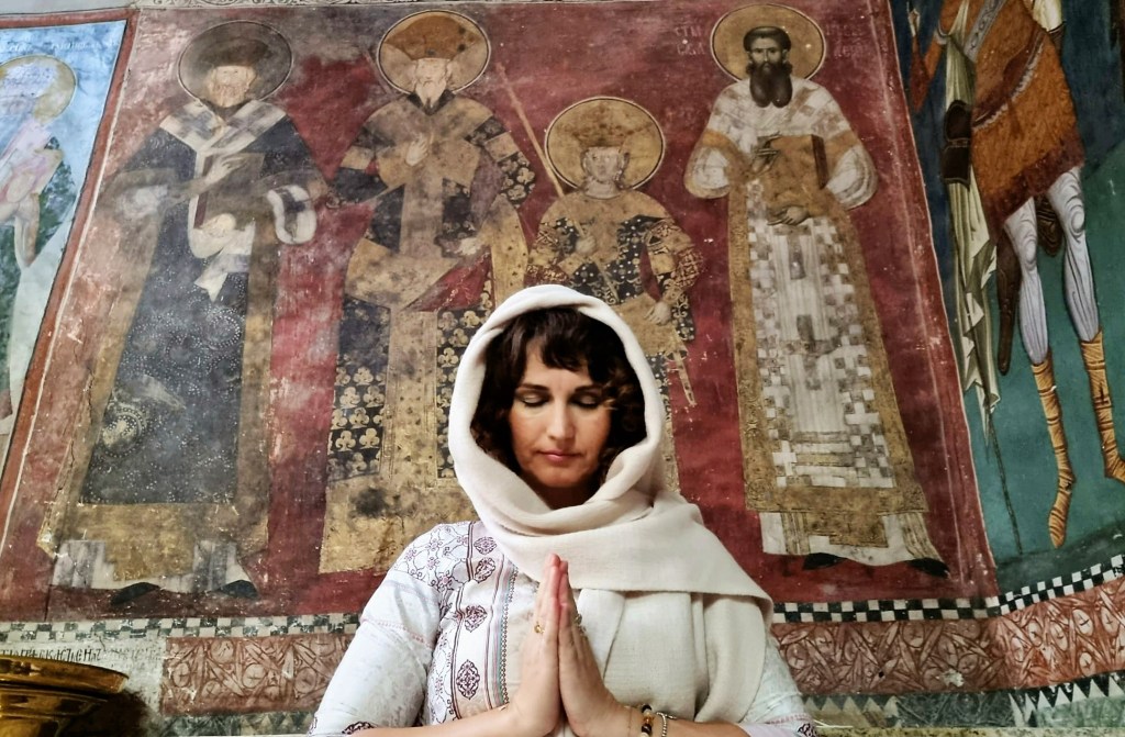 Draga prijateljica Ana Žikić, stručnjak iz oblasti Kineske Tradicionalne Medicine, u poseti manastirima u tradicionalnoj nošnji – preslatka