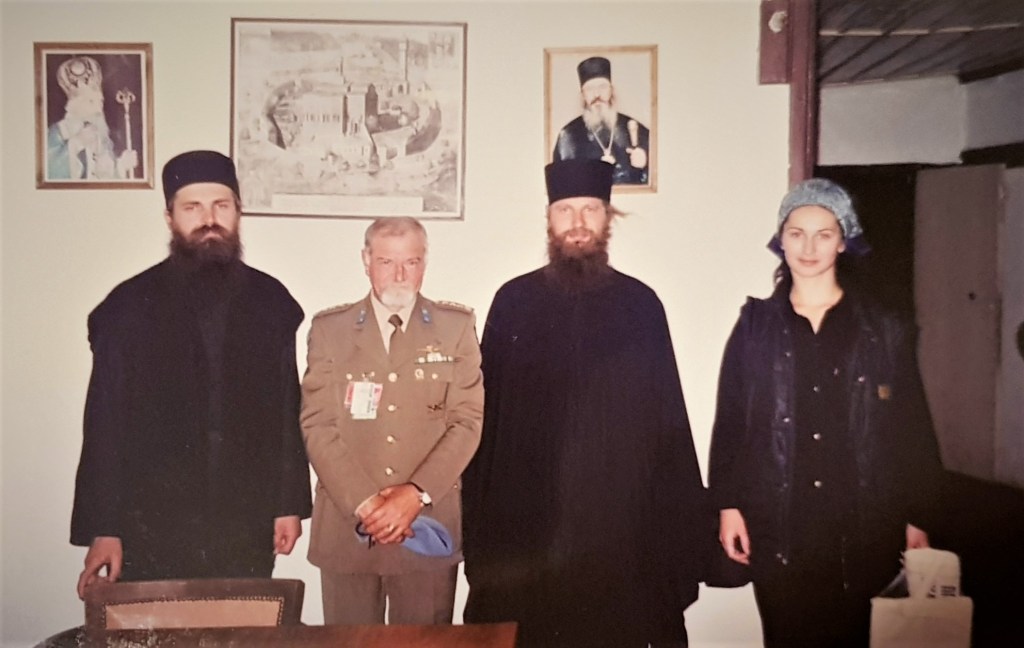 Sa Igumanom Teodosijem (sadašnji Episkop Raško-Prizrenski), komandantom italijanskog KFOR-a i Ocem Petrom – Kosovo, April 2000.